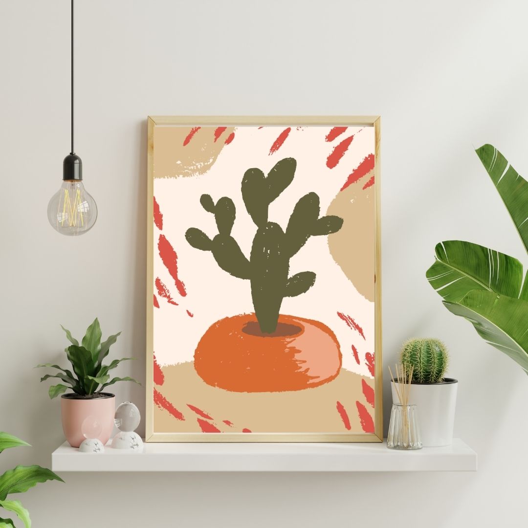Add earthy charm to your space with this cactus kitchen wall art print. Featuring a bold botanical desert illustration in warm, natural tones, this modern poster brings texture and personality to your kitchen or dining area.